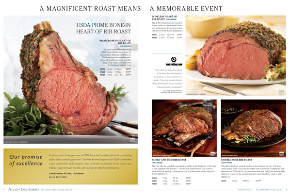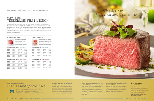 Clean, and sophisticated design conveys the highest quality luxury dining with choice cuts and amazing taste. Editorial throughout to reinforce quality branding.