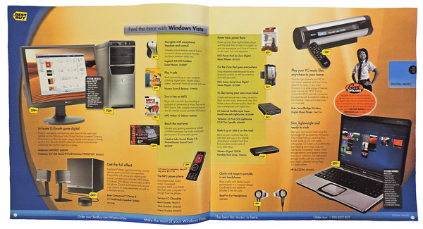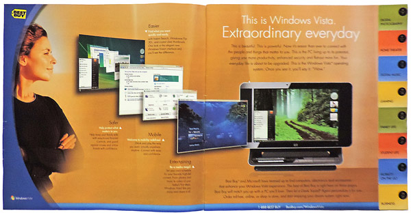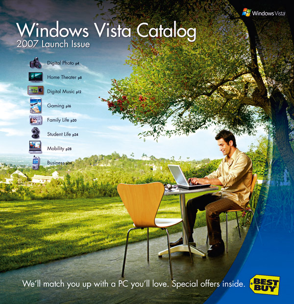 Colorful, sleek and easy to follow design reveals a strategic partnership between Mircosoft and Best Buy with launch of new software and computer systems with add-ons.
